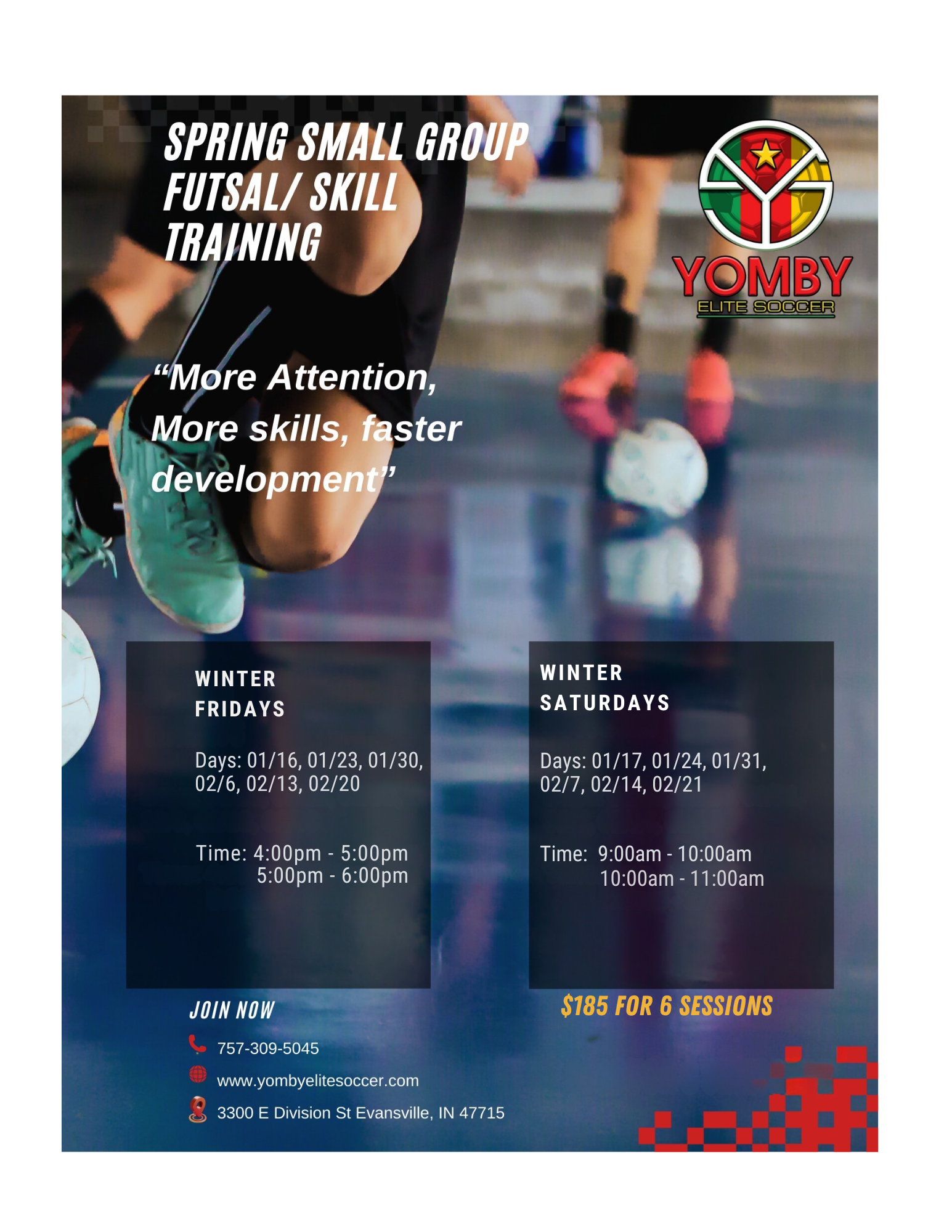 At Yomby Elite Soccer, we are excited to introduce our new year-round Futsal program, designed to enhance the sports experience for our local soccer players. This program, developed with a focus on technical and tactical training.